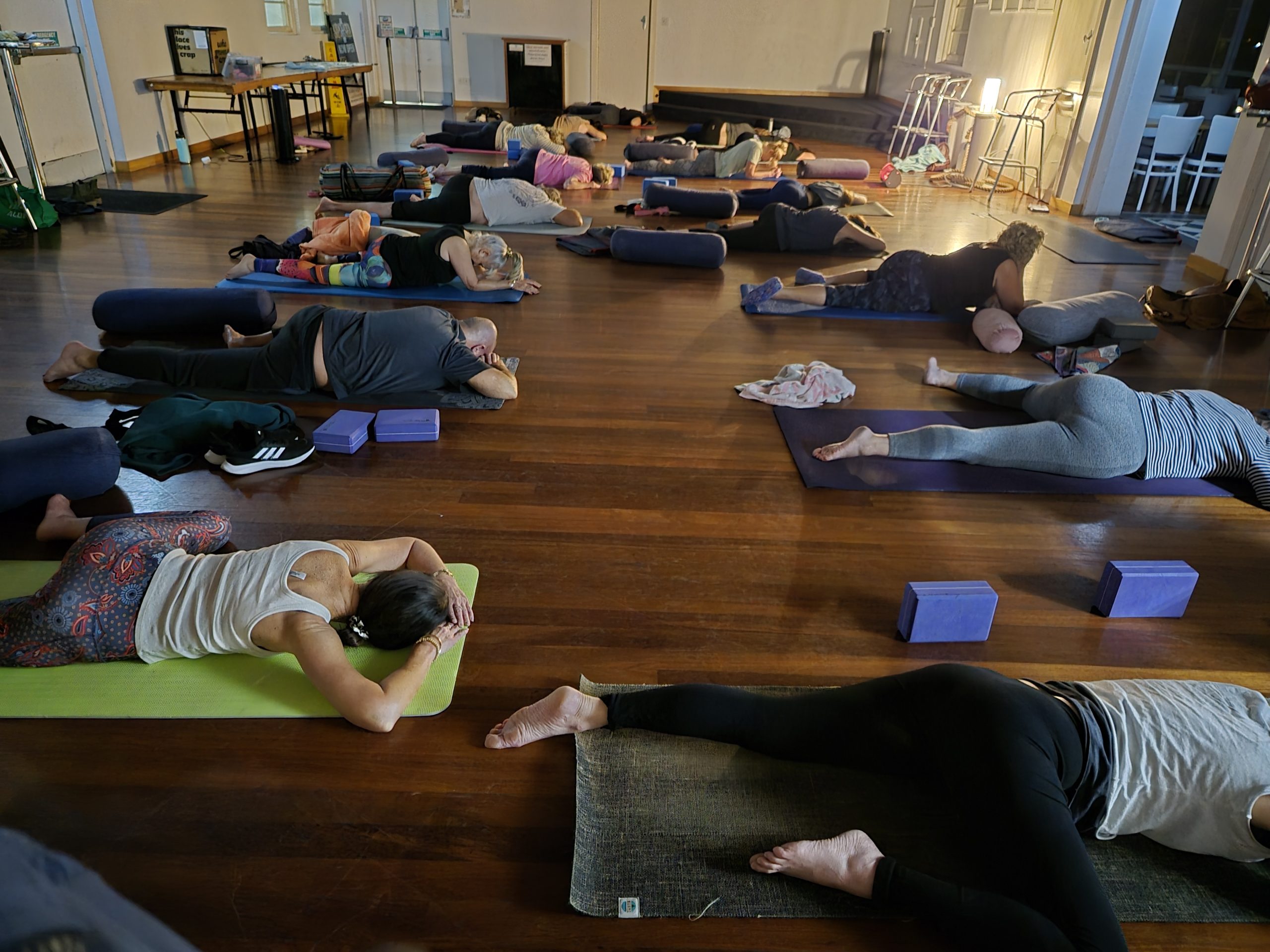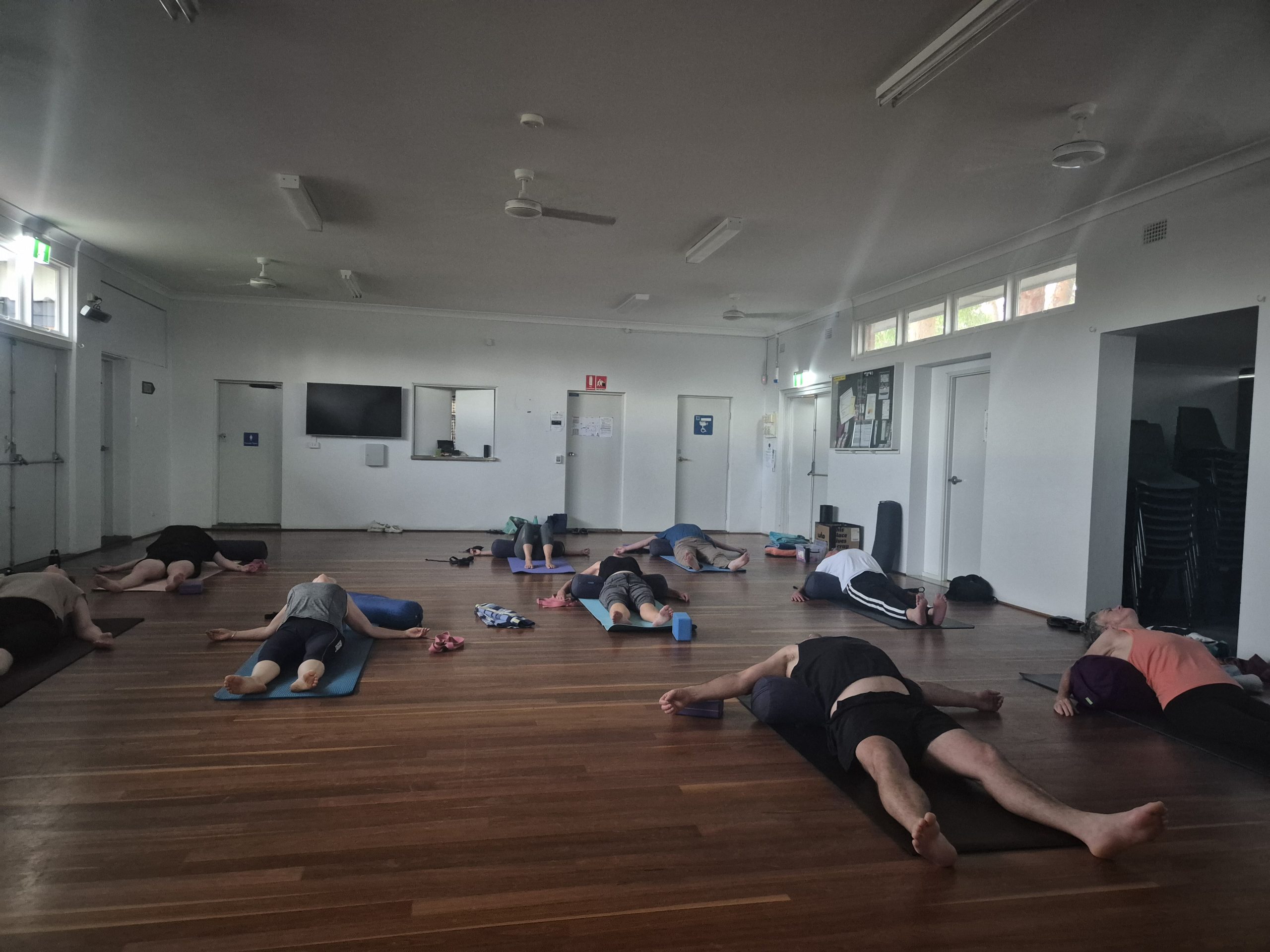 What to bring: A yoga mat, blocks and bolster (if you have these – some supplied for injures), water bottle